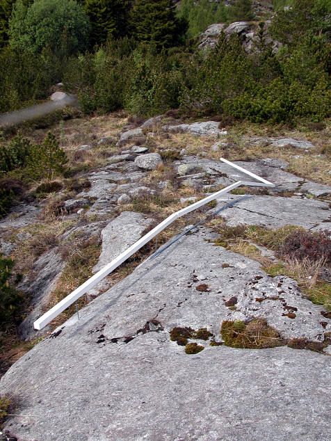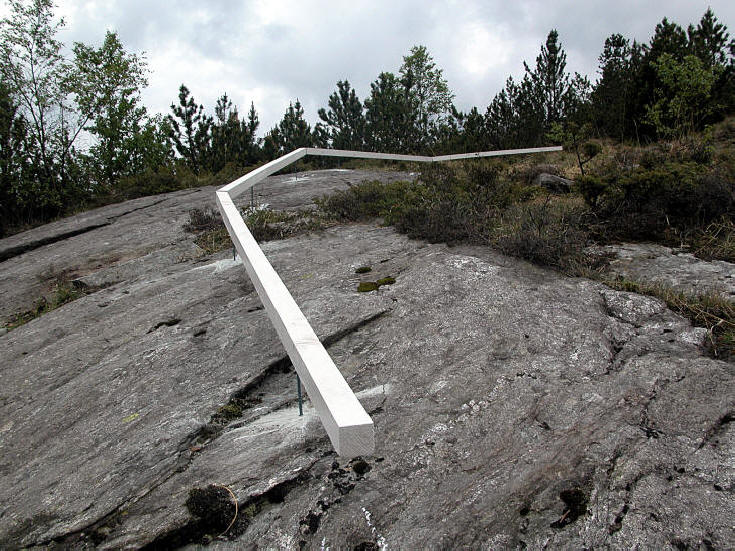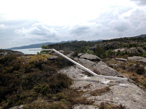 painted wood laths, mounted on smooth, grey painted structural steel.