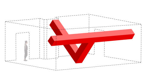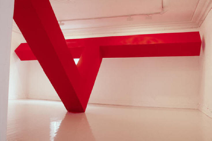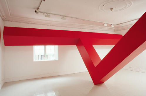a new tension. Most of the weight meets the floor along a sharp corner.