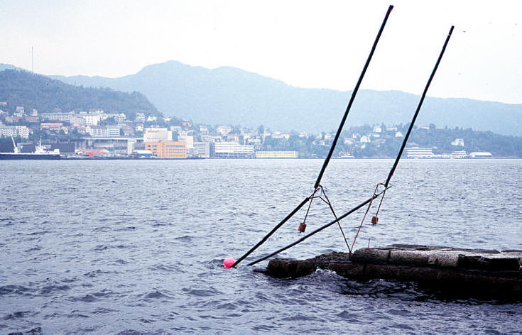 wire, and PVC pipes. On the quay by Kulturhuset Bergen (U.S.F.), Norway.