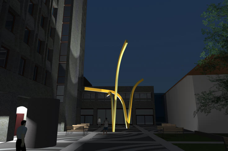 and size, it communicates beyond the narrow town hall square,